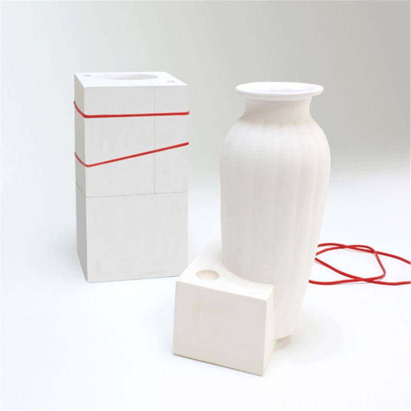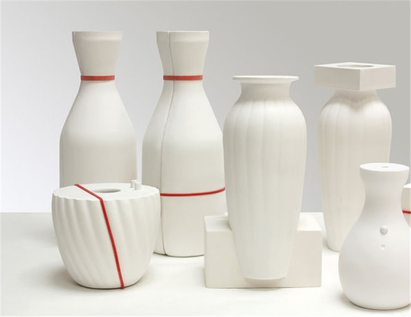 石膏注漿成型的模具通常在使用后就被丟棄。這些白色優(yōu)美剛?cè)岵?jì)的花瓶從模具中來并表達(dá)出通常不為人們所見的模具之美。